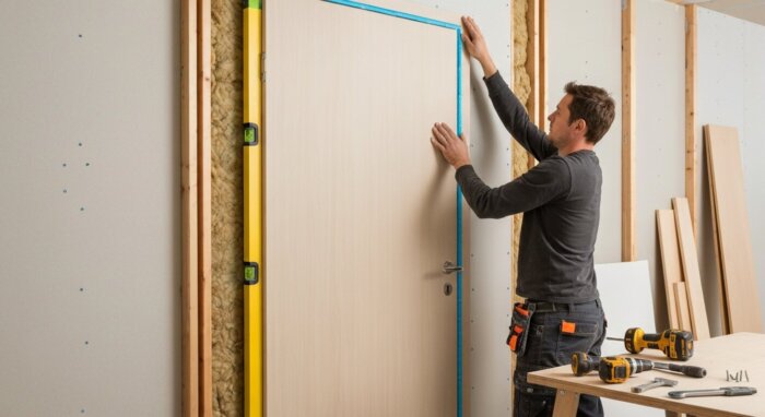 La instalación correcta es tan importante como la elección de la puerta. En tabiquería de yeso laminado, sigue estos pasos para maximizar el aislamiento acústico:
