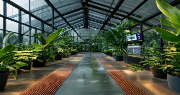 - Regulación de Humedad: El suelo vinílico es impermeable, lo que previene filtraciones y permite un manejo preciso de la humedad ambiental, crucial para evitar enfermedades fúngicas.