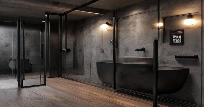 Las mamparas de metal negro son el complemento ideal para un baño industrial. Elige un modelo con perfil de aluminio lacado en negro mate y vidrio templado. La instalación requiere fijar los perfiles a la pared con tacos y tornillos, asegurándote de que estén nivelados. Usa silicona neutra para sellar las juntas y evitar filtraciones. Si la mampara es corredera, monta los rieles superiores e inferiores antes de colocar las hojas.